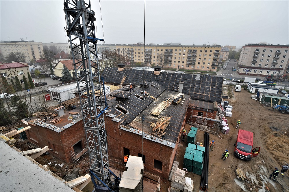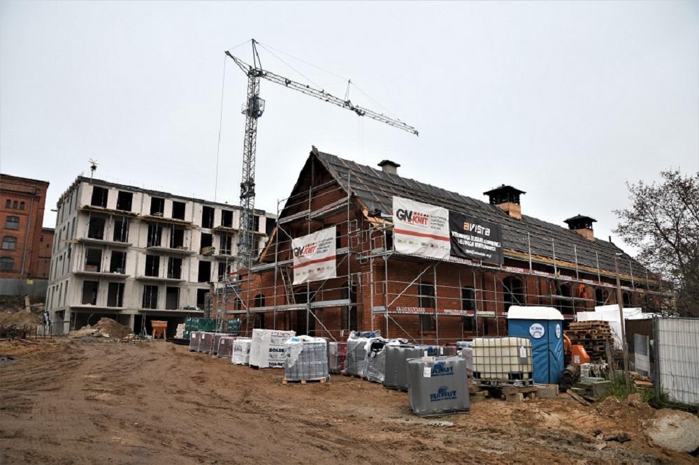 Aktualnie trwają prace nad montażem stolarki aluminiowej i PCV w budynku zabytkowej rzeźni miejskiej oraz wielorodzinnym. Rozpoczęto murowanie ścian działowych w lokalach mieszkalnych. Zakończono prace żelbetowe z attykami, rozbierane są szalunki i trwają przygotowania do betonowania murków na balkonach parteru budynku wielorodzinnego.