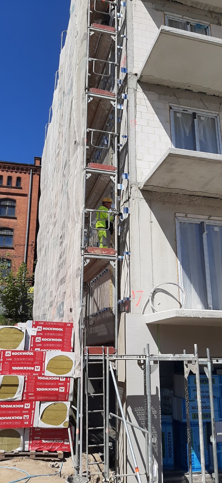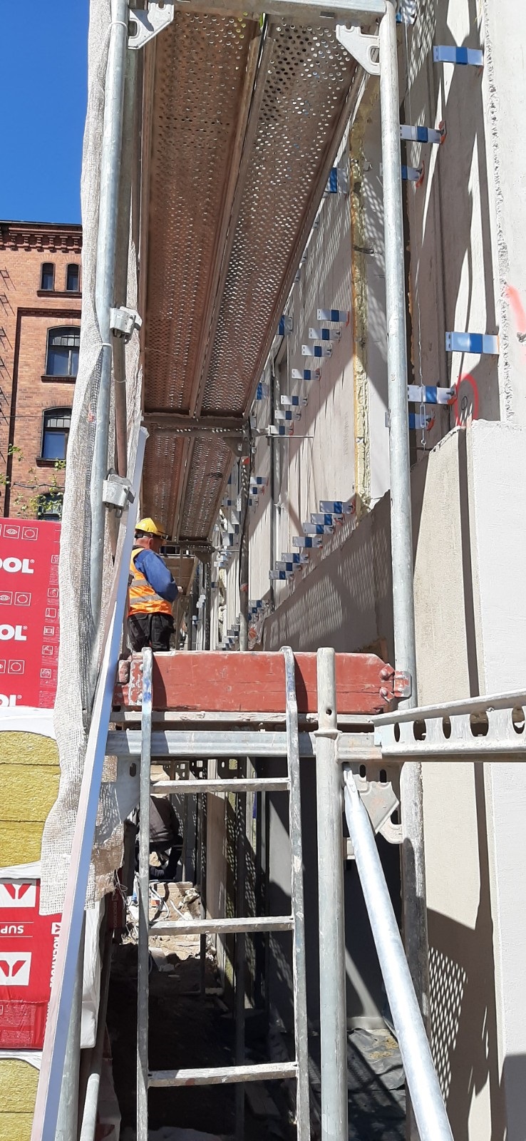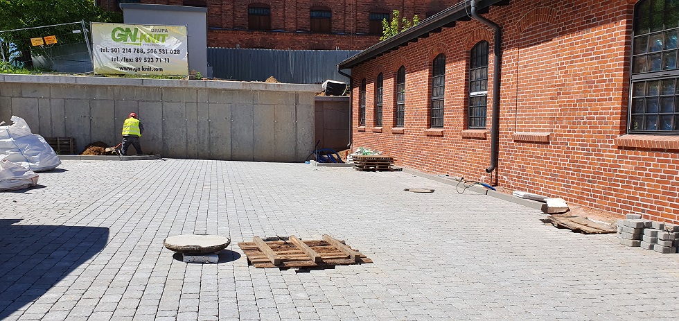 W budynku wielorodzinnym WP1 realizowane są prace instalatorskie i posadzkarskie. Rozpoczęto układanie płytek podłogowych w komórkach lokatorskich. Elewacja zewnętrzna budynku WP1 podzielona jest na dwie technologie – od strony zachodniej i północnej położona jest elewacja BSO, natomiast od strony wschodniej i południowej aktualnie montujemy podkonstrukcje elewacji wentylowanej gdzie położone będą panele firmy Ruukki-Liberta Cor-Ten 700. W budynkach zabytkowych zostały wykonane zabudowy sufitów wraz z izolacjami ścian wewnątrz w technologii Recticel Eurothane G. Jednocześnie na całej inwestycji prowadzone są prace związane z zagospodarowaniem, wykonaniem dróg i chodników.