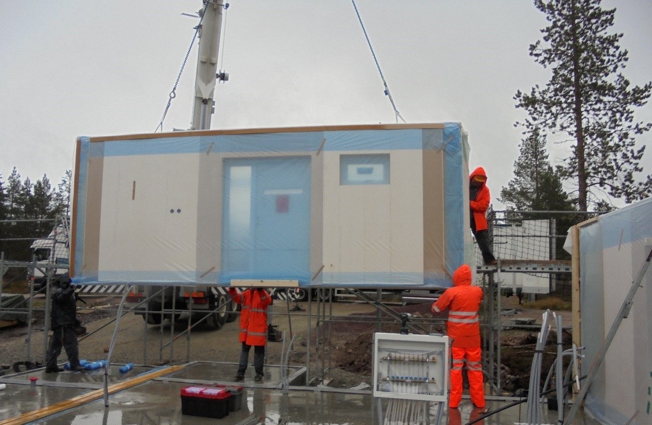 Budowa 3 domów prefabrykowanych w ośrodku narciarskim Tandådalen w Szwecji.