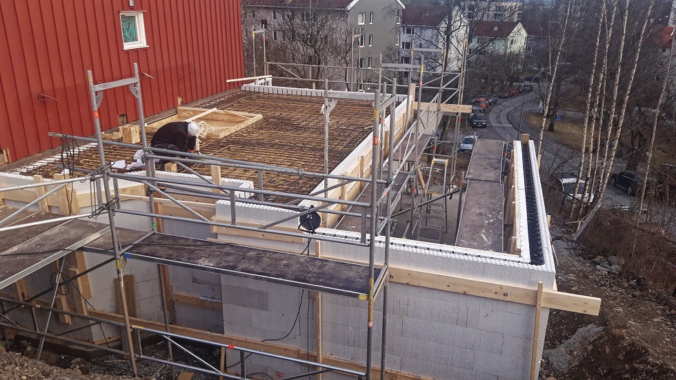 Prowadzimy prace przy rozbudowie budynku mieszkalnego w Norwegii. Parter jest wykonywany w nowoczesnej technologii szalunku traconego ze styropianu – Jackon Thermomur. Kondygnacje wyższe będą wykonane w konstrukcji drewnianej, szkieletowej. Prace przebiegają sprawnie, współpracujemy z norweskimi podwykonawcami branży sanitarnej i elektrycznej.