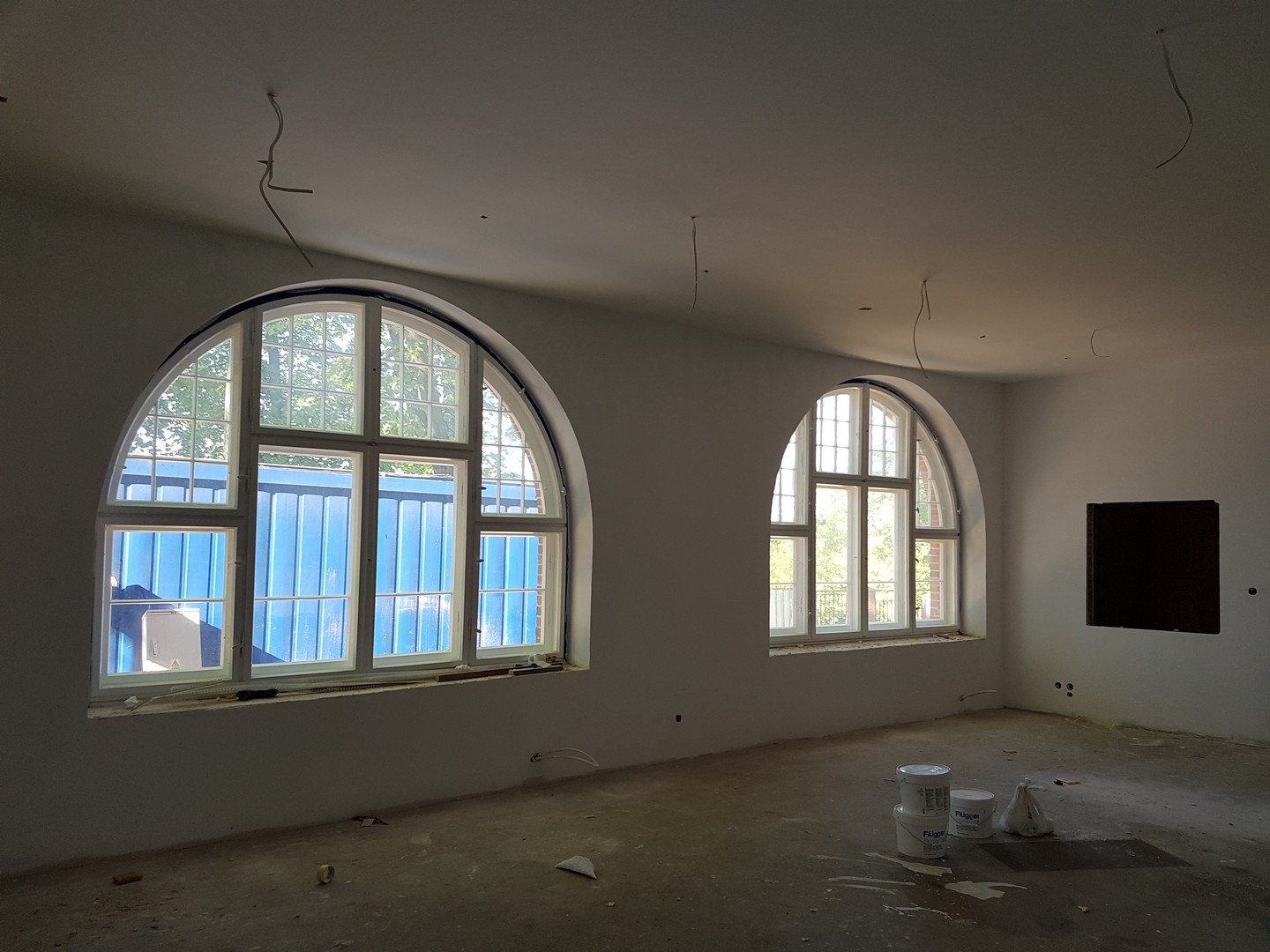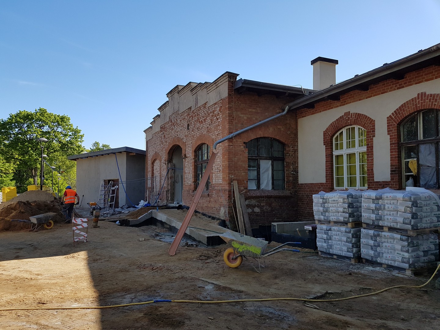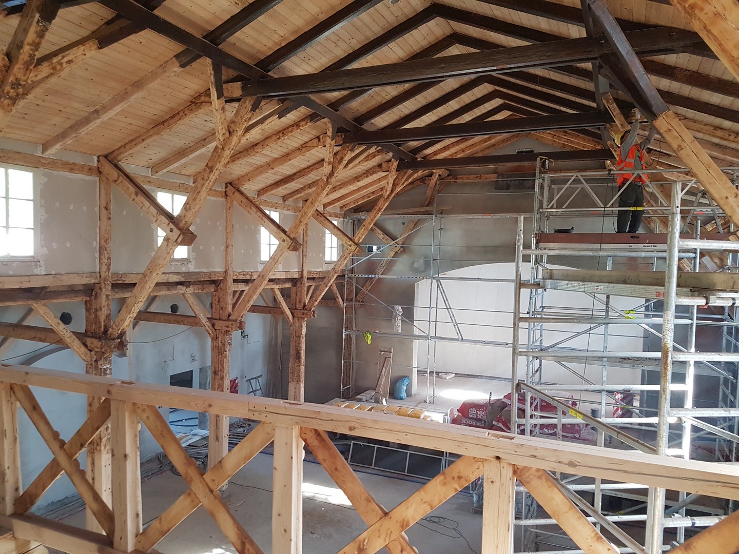 Obecnie wewnątrz budynku trwają prace wykończeniowe, malowania pomieszczeń biurowych, szpachlowanie pomieszczeń piwnicznych, wykonanie okładzin z płytek ceramicznych w łazienkach i toaletach. W głównej sali wykonywane są prace montażowe odrestaurowanych elementów drewnianych zabytkowej empory. W pomieszczeniu kotłowni, montowana jest zaawansowana technologia węzła. Na zewnątrz prowadzone są prace związane z dojściem do obiektu.