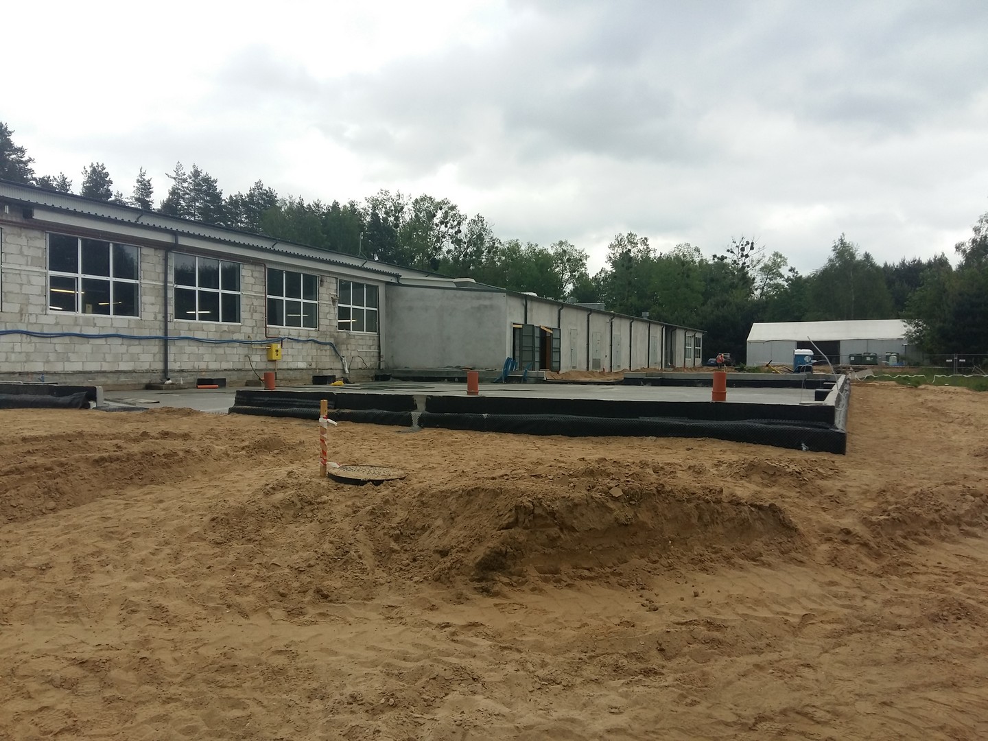 Zakończony został etap fundamentów pod konstrukcję stalową. Przygotowano i wylano podkład pod posadzkę przemysłową. Rozpoczęto wykonanie drogi dojazdowej do hali z kostki betonowej.